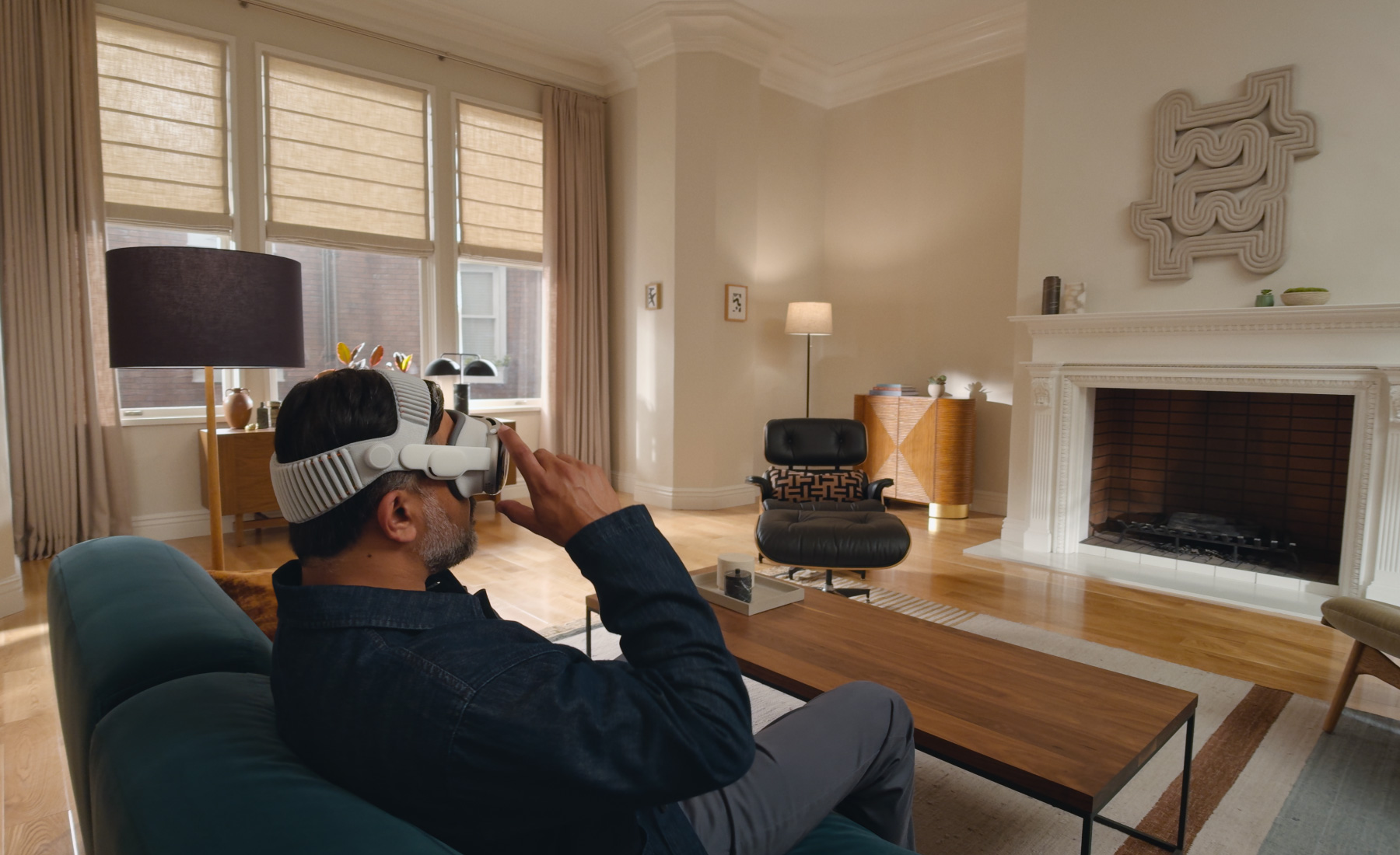 In visionOS, apps fill the space around you, beyond the boundaries of a display. They move anywhere, scale to the perfect size, react to the lighting in your room, and even cast shadows.