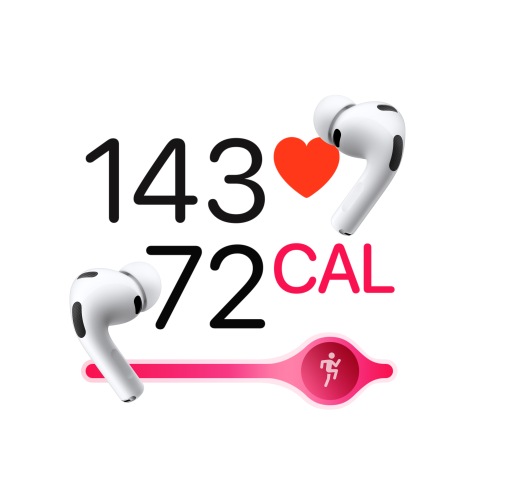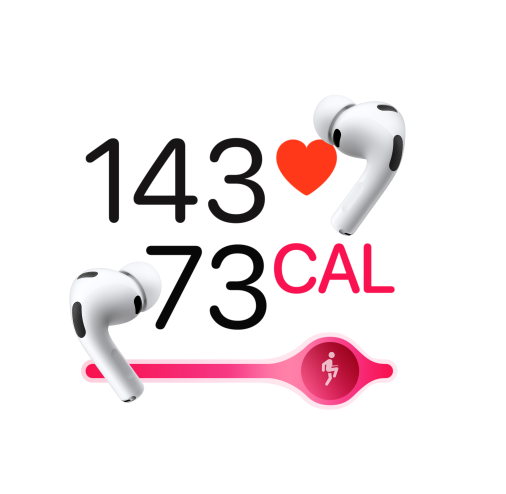 • When you use AirPods Pro 3 or Powerbeats Pro 2 with Fitness+, you’ll see your real-time personal metrics onscreen, including your heart rate and calories burned during the workout. You can also see these metrics when you wear a third-party heart rate monitor connected to your device.1