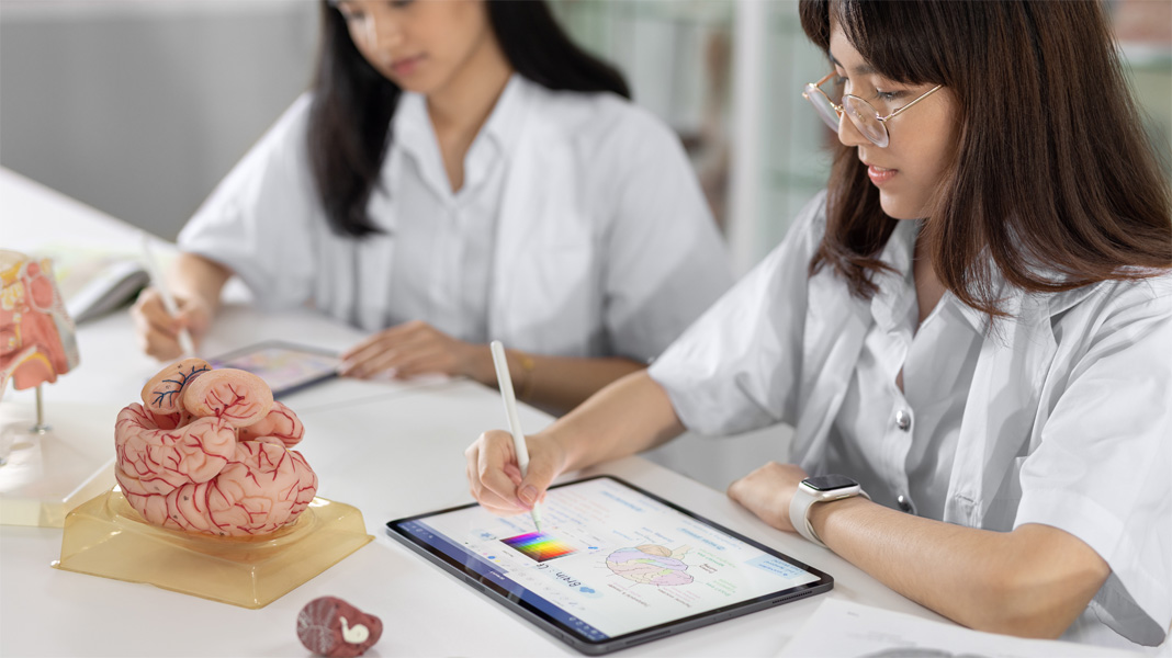 „Das iPad ist für das Medizinstudium extrem hilfreich. Ich kann damit kolorierte Inhalte erstellen, um die Anatomie und Funktionsweise des menschlichen Körpers leichter zu verstehen. Außerdem fühlt sich das Schreiben mit dem Apple Pencil flüssig und natürlich an. Seine Funktionalität ist dynamisch und benutzerfreundlich.“