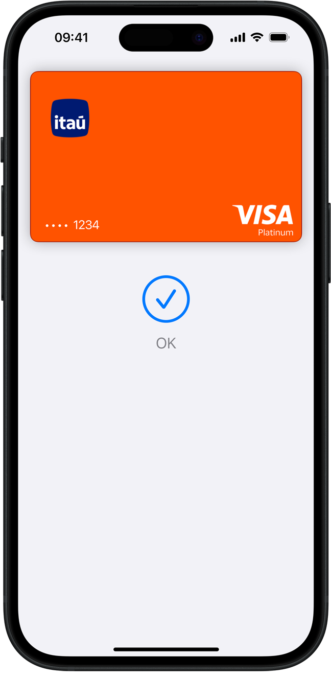 Configure em segundos no seu iPhone. O Apple Pay está integrado ao iPhone, Apple Watch, Mac e iPad. Para começar no iPhone, abra o app Carteira e toque no símbolo de mais. Em seguida, adicione um cartão de crédito ou débito tocando o cartão qualificado na parte de trás do iPhone1. Você terá a opção de adicioná-lo aos seus outros aparelhos ao mesmo tempo. Para pagar, clique duas vezes, toque e pronto. Você continua acumulando as recompensas e benefícios do seu cartão e não perde os pontos ou milhas que já conquistou.