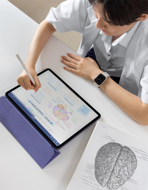 Hannah easily combines her love of art with her student-teaching studies. On iPad with Apple Pencil, she designs student worksheets with multimedia content to appeal to different learning styles. For her assignments, she visually represents ideas by taking photos on iPhone and creating sketches on iPad, then uses AirDrop to send them to her Mac for editing. Her personalized digital workflows help her to develop content that inspires students to learn and teachers to teach.