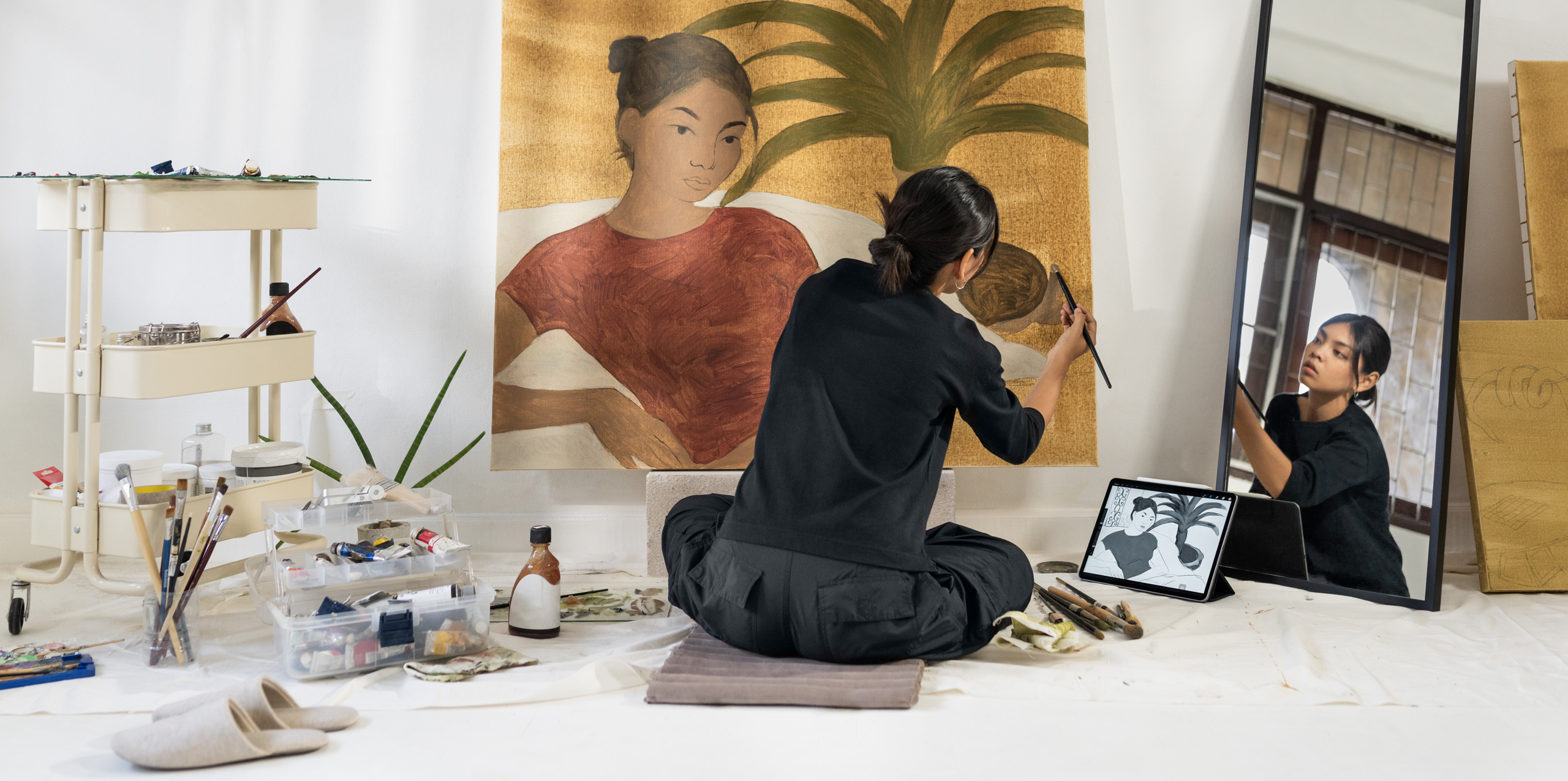Today she uses Procreate on iPad with Apple Pencil for all her creative workflows. Features such as QuickShape and StreamLine with Apple Pencil enable her to quickly add layers, outlines, colours and shadows in an immersive and playful way. “My love for traditional painting and digital art brings me a new sense of balance. My Apple devices help make this possible from anywhere.”