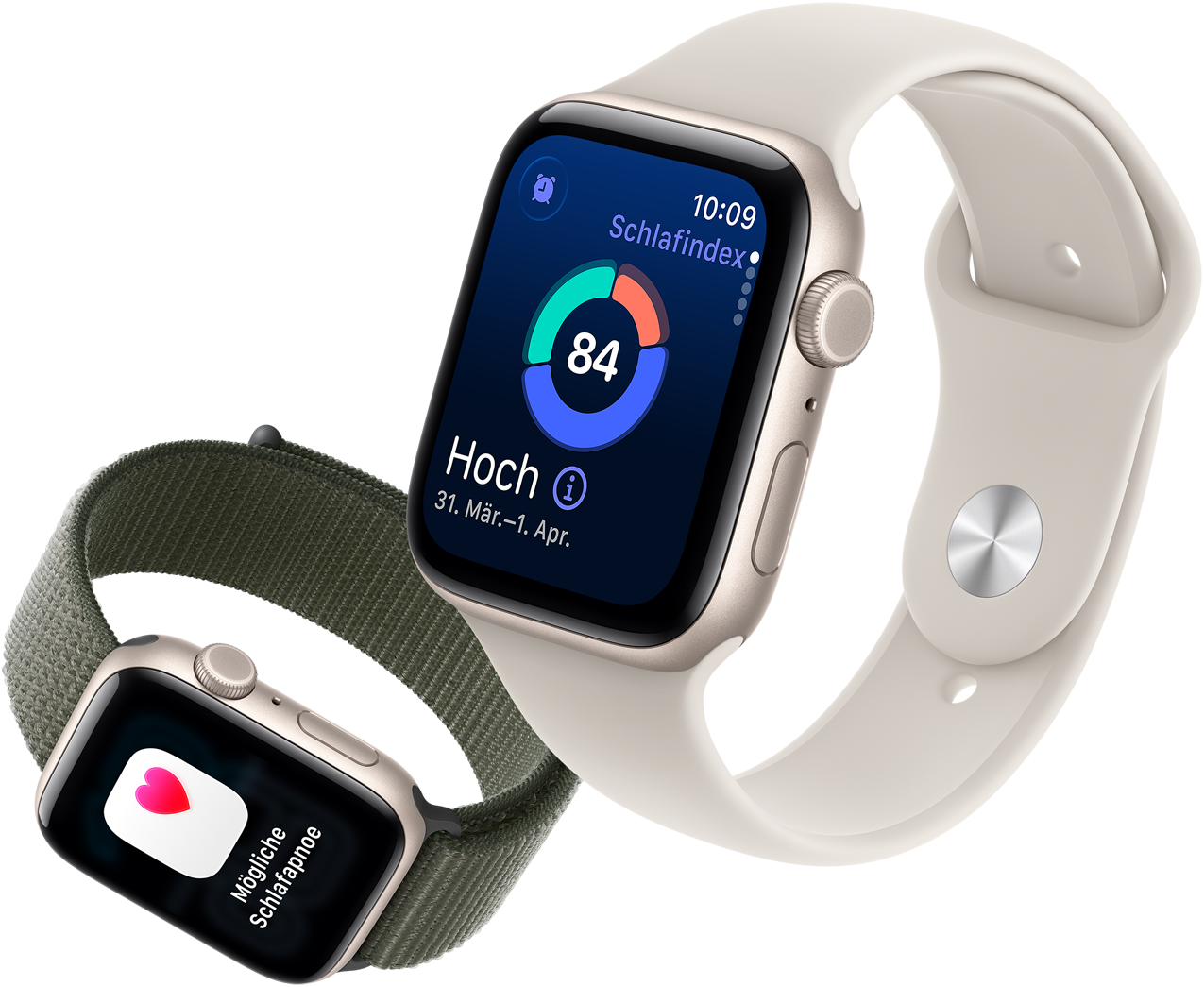 Schlafapnoe ist eine Erkrankung, bei der das regelmäßige Atemmuster der Betroffenen im Schlaf wiederholt unterbrochen wird. Unbehandelt kann sie zu einem erhöhten Risiko für Bluthochdruck, Typ 2 Diabetes, Herzproblemen und mehr führen. Die SE 3 erkennt Atemstörungen im Laufe der Zeit und benachrichtigt dich bei möglicher Schlafapnoe.10