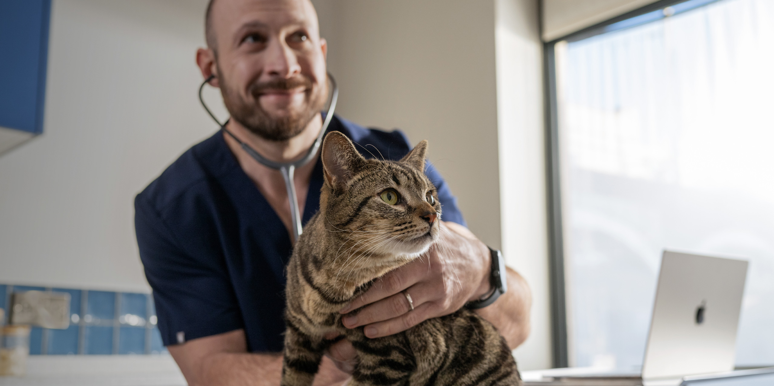 Hello Vet utilise les produits Apple pour leur simplicité d’utilisation et leur fiabilité, qui permettent d’offrir une expérience fluide à la clientèle. À l’accueil, un iMac sert à enregistrer les rendez‑vous via un système de gestion de la patientèle sur le cloud. Chaque salle de consultation est équipée d’un Mac mini et dans la salle d’opération, l’ensemble du personnel a accès à toute une série d’iMac. Et nous remettons aux vétérinaires et membres de l’équipe de chirurgie un MacBook Air qui les suit partout grâce à sa légèreté et à son autonomie.