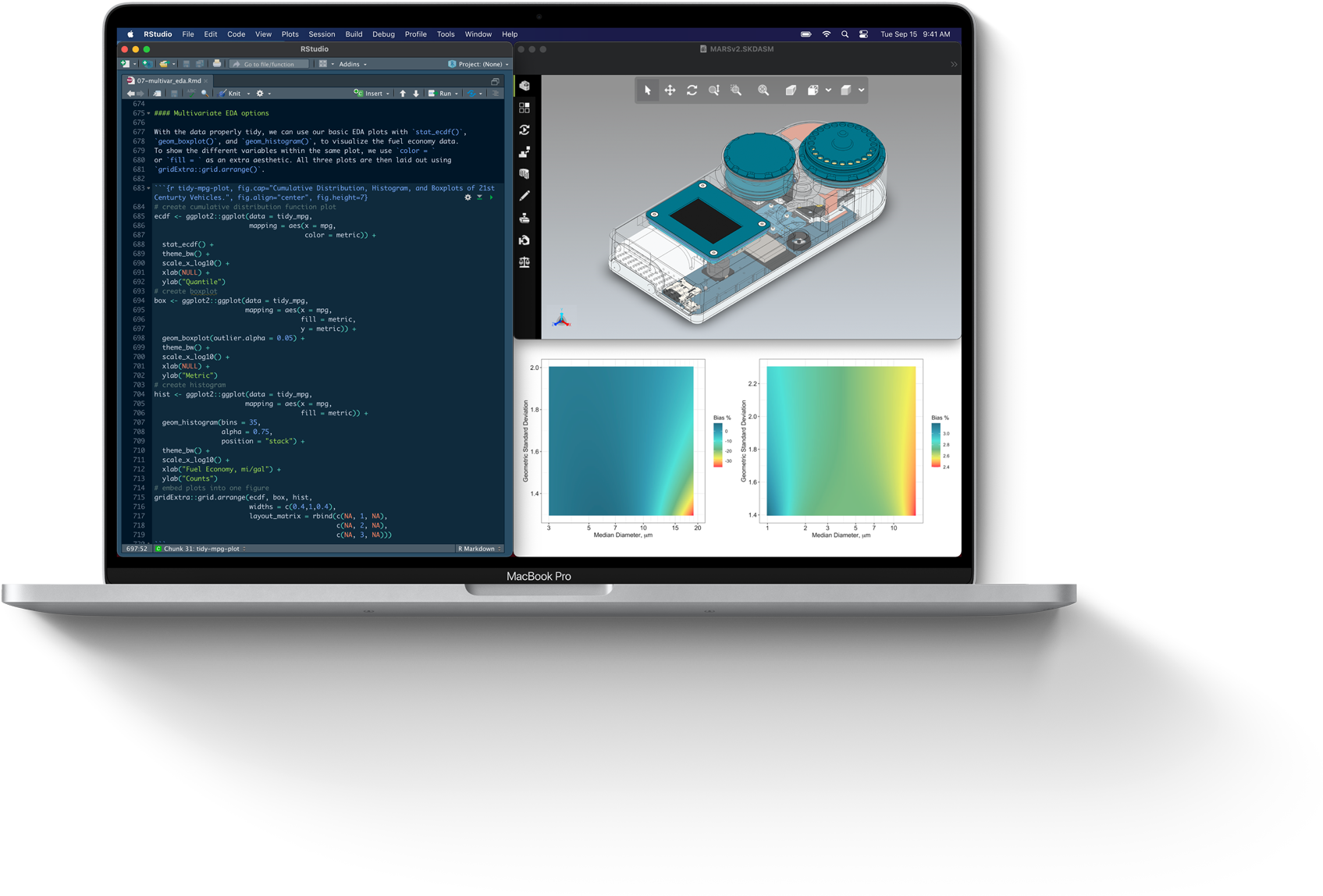 MacBook Pro. All the power Dr Volckens needs to analyse massive air quality datasets and render stunning visualisations of his findings on interactive dashboards. All at the same time.