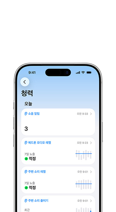 AirPods Pro 3의 ‘큰 소리 줄이기’ 기능은 시끄러운 환경 소음에의 노출을 줄여줍니다.3