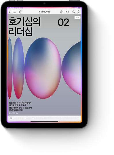 iPad mini는 iPadOS로 구동됩니다. 덕분에 정말 많은 걸 아주 손쉽게 해낼 수 있죠. 간결한 Multi-Touch 제스처로 작업 처리하기, 여러 앱을 동시에 사용하기 등 다양한 기능을 활용할 수 있답니다.
