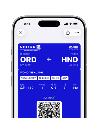 수하물을 추적하고, 공항 지도를 사용하고, 새롭게 디자인된 탑승권에서 바로 항공편 현황도 공유할 수 있습니다.