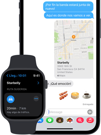 Disfruta una experiencia fluida y sin interrupciones en todos los dispositivos Apple que usas para desplazarte. El Apple Watch te guía en la dirección correcta con una respuesta háptica para que no tengas que llevar tu iPhone en la mano cuando caminas. Las alertas de Calendario en tu Mac te avisan cuando es hora de dejar de trabajar e irte. Con sólo pedirlo, el HomePod busca las indicaciones para llegar a un lugar y las envía a tu iPhone cuando estás saliendo. Y Mapas también se sincroniza automáticamente con Siri, Spotlight, Mensajes y Clima para entregarte información relevante en el momento adecuado.