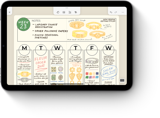 Zo moet tekenen, schilderen en notities maken aanvoelen: intuïtief, precies en magisch. Apple Pencil is kantel­gevoelig, tot op de pixel nauwkeurig, reageert razend­snel en weet wanneer je je hand op het scherm laat rusten.2 En nu maakt Apple Pencil Pro het nog makkelijker om je ideeën tot leven te brengen.