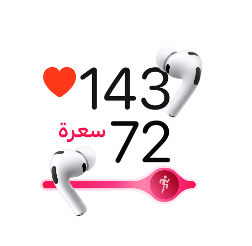 • عند استخدام +Fitness مع AirPods Pro 3 أو Powerbeats Pro 2، سترى قياسات شخصية في الوقت الفعلي على الشاشة، بما فيها معدل نبض قلبك والسعرات الحرارية التي تحرقها خلال التمرين. ويمكنك أيضاً رؤية هذه القياسات عند ارتداء جهاز مراقبة لمعدل نبض القلب من جهة خارجية ويكون موصولاً بجهازك. 1
