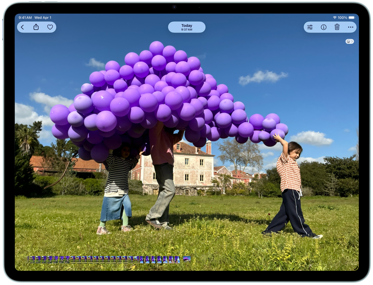 Landscape view of iPad Air showcasing Apple Intelligence with the Clean up tool in Photos app