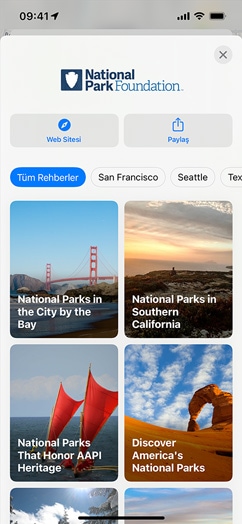 Rehberler, tüm dünyadaki şehirlerde görülecek ve yapılacak muhteşem şeyleri keşfetmenize yardımcı oluyor.4 Özel olarak hazırlanan 1000’e yakın rehbere erişmek ve dikkatinizi çekenleri bulup kaydetmek için Rehberleri Keşfet düğmesine dokunmanız yeterli. Özel Düzenlenmiş Rehberler, yeni yerler eklendiğinde otomatik olarak güncelleniyor. Böylece her zaman en yeni önerileri görebiliyorsunuz. Ayrıca dilerseniz kendi Rehberler kategorinizi oluşturup arkadaşlarınız ve ailenizle paylaşabiliyorsunuz.