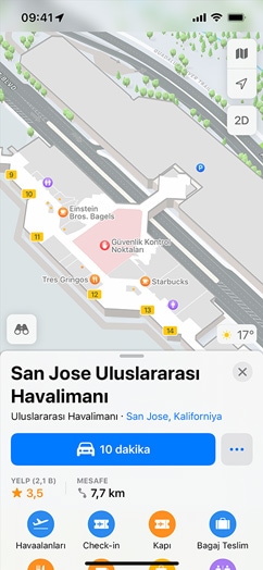 Gideceğiniz yeri seçin, interaktif yer kartında ihtiyaç duyduğunuz her şeyi bir bakışta görün. Adres, çalışma saatleri, web sitesi, telefon numarası gibi bilgilerin yanı sıra fiyat aralığı, fotoğraf galerileri, ilgili Rehberler, kabul edilen ödeme türleri, hatta köpeğinizle gidip gidemeyeceğiniz gibi birçok ayrıntıyı da görüntüleyin. Flyover veya Etrafa Bak’ı açarak konum ve çevresindekiler hakkında fikir edinin.